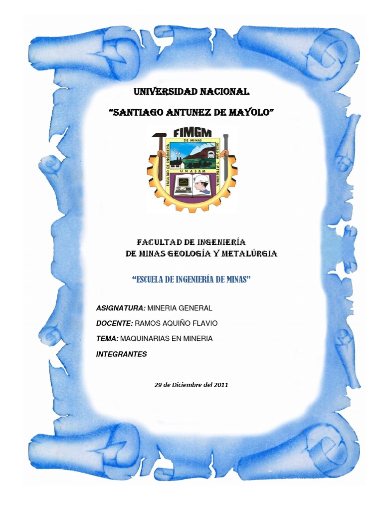 TEMA: MAQUINARIAS EN MINERIA