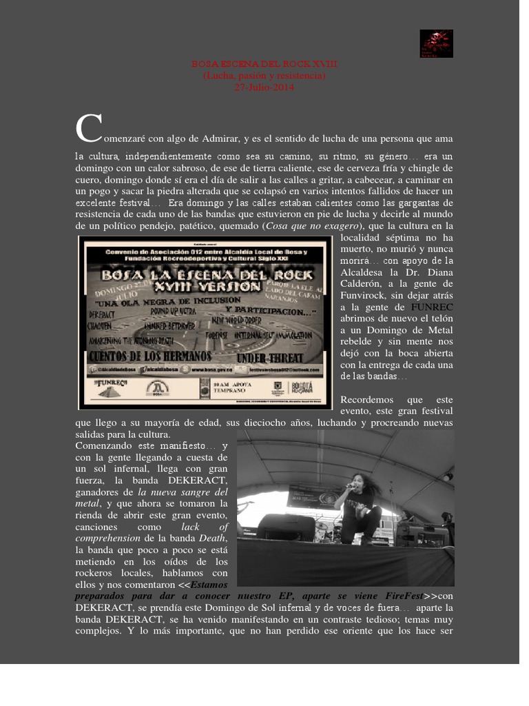 resistencia de cada uno de las bandas que estuvieron en pie de lucha y decirle al mundo