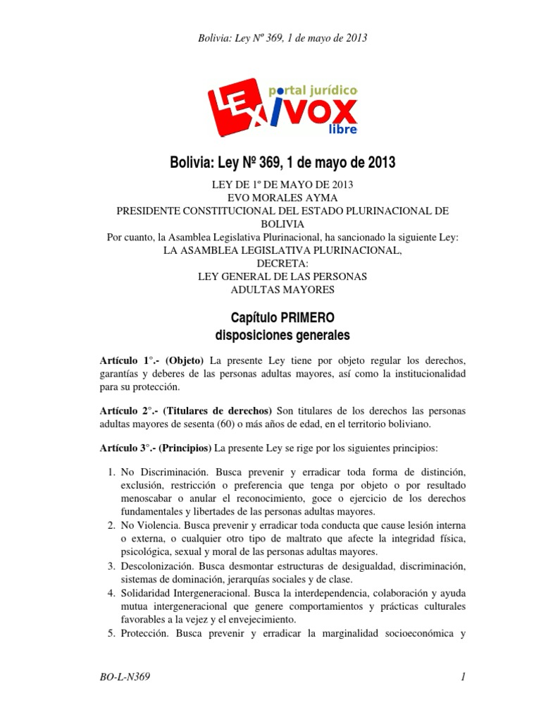 . . . . . . . . . 1 Bolivia: Ley N 369, 1 de mayo de 2013
