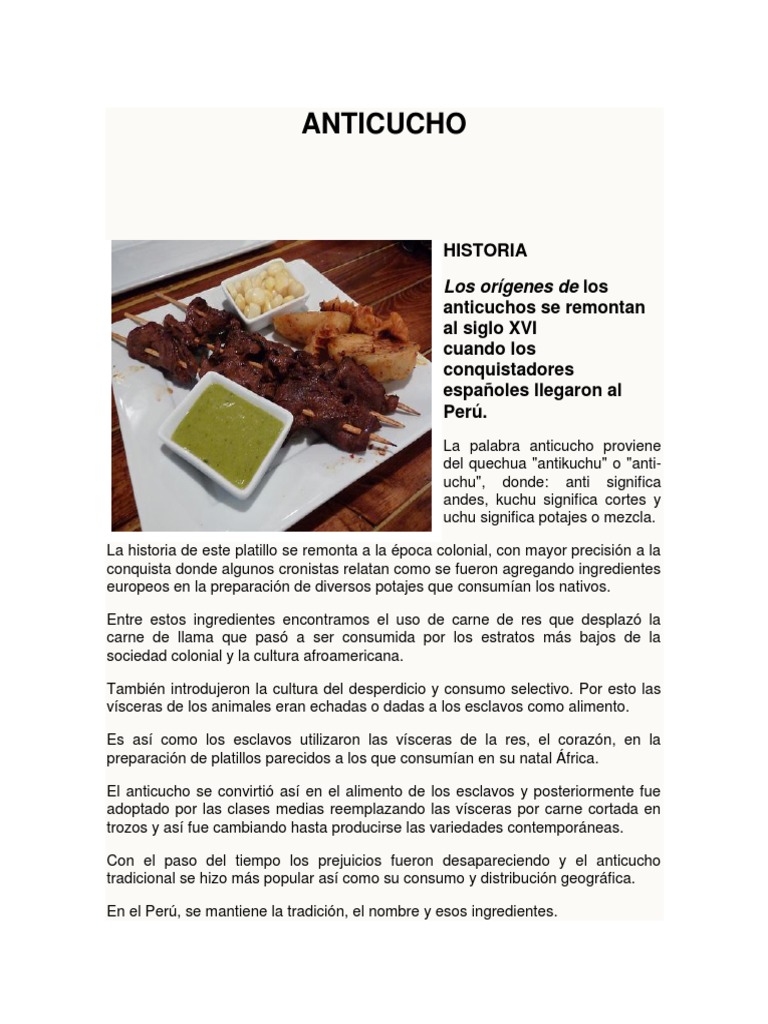 El anticucho se convirti as en el alimento de los esclavos y posteriormente fue