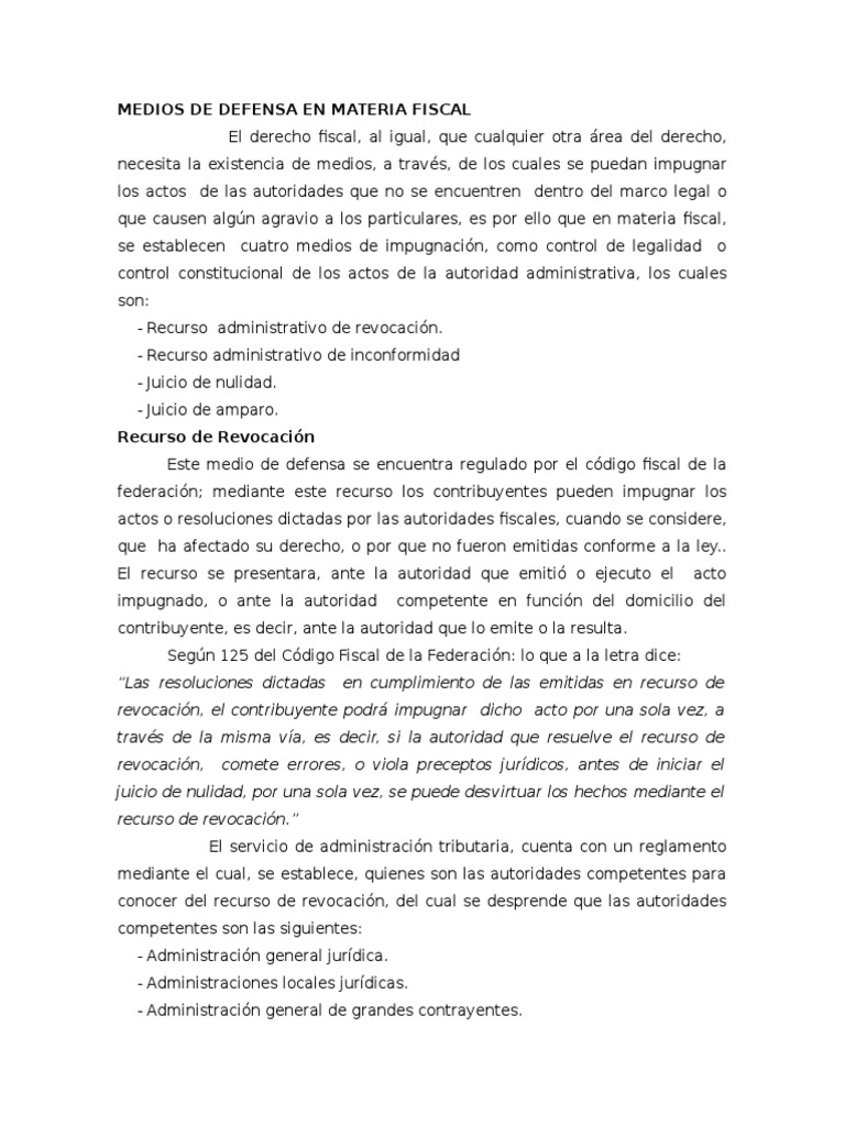 Este medio de de!ensa se encuentra regulado por el cdigo fscal de la