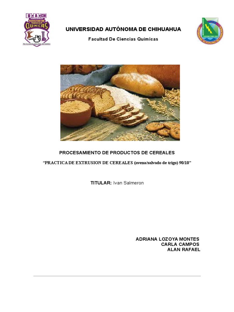 PRACTICA DE EXTRUSION DE CEREALES (avena/salvado de trigo) !/"!#