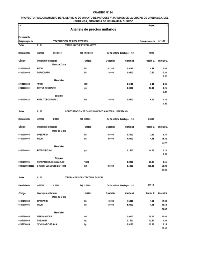 PROYECTO: "MEJORAMIENTO DERL SERVICIO DE ORNATO DE PARQUES Y JARDINES DE LA CIUDAD DE URUBAMBA, DEL DISTRITO DE