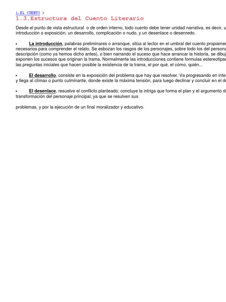 Desde el punto de vista estructural o de orden interno, todo cuento debe tener unidad narrativa, es decir, una estructuracin, dada por: una