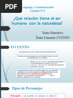Cuento: narracin de peripecias en torno a un personaje.