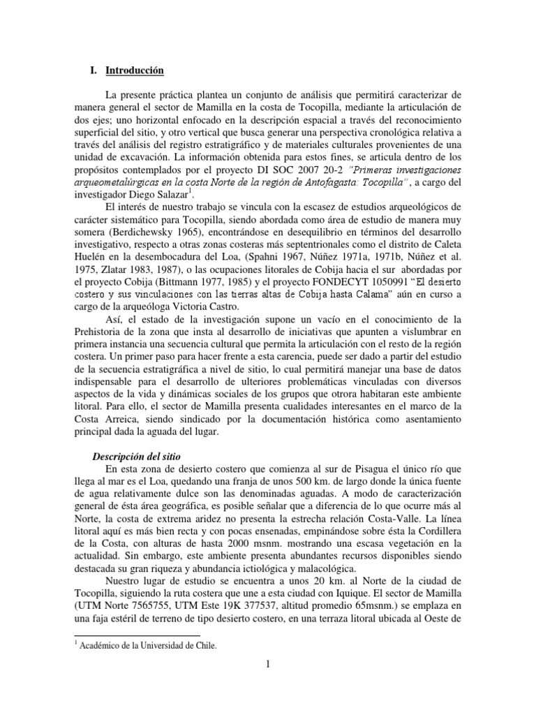 arqueometalrgicas en la costa Norte de la regin de Antofagasta: Tocopilla, a cargo del
