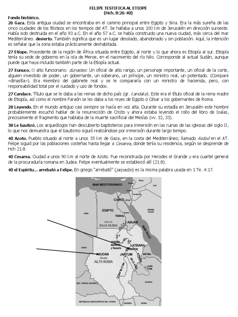26-40. EL EUNUCO ETIOPE. Con esta narracin del progreso del evangelio entre los samaritanos, est conectada