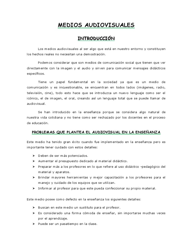 Los medios audiovisuales al ser algo que est en nuestro entorno y constituyen