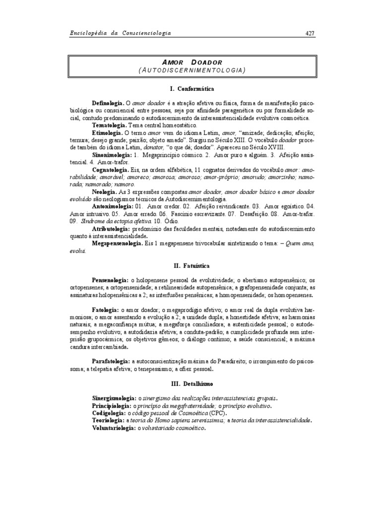 Remissiologia. Pelos critrios da Mentalsomatologia, eis, por exemplo, na ordem alfab-