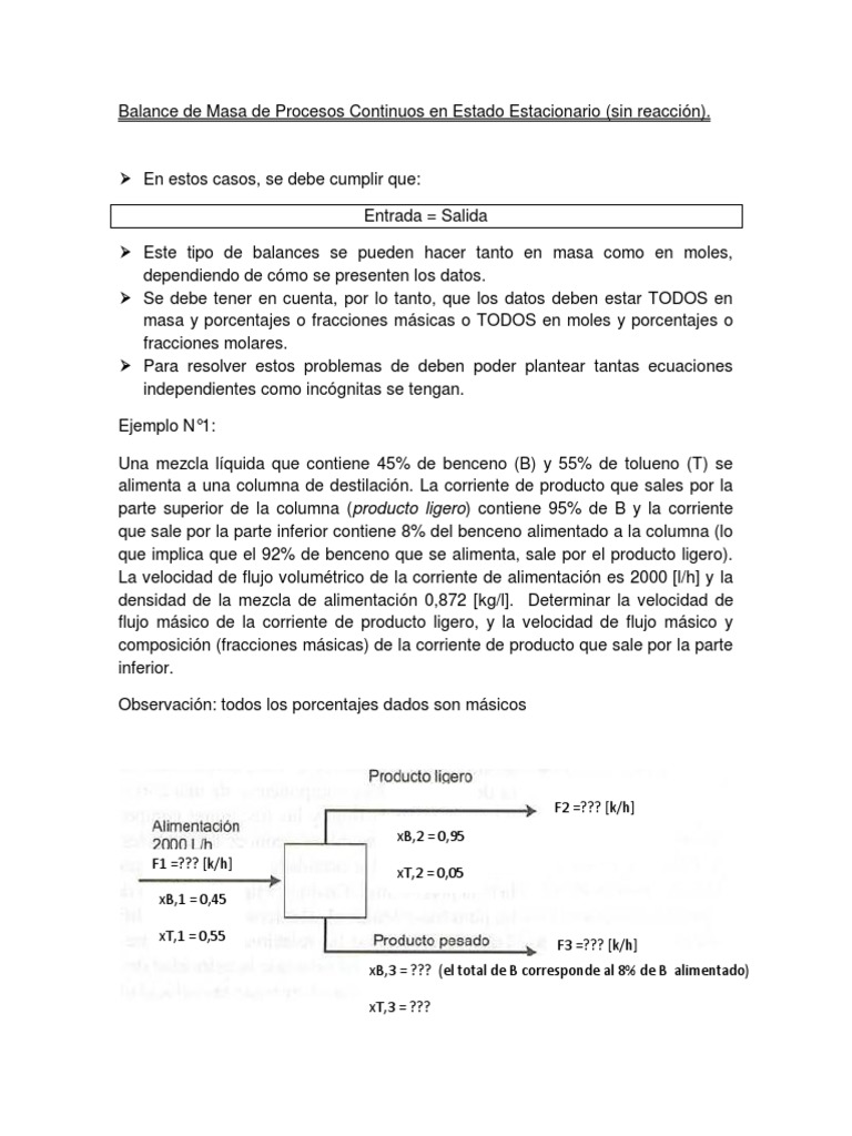 Balance de Masa de Procesos Continuos en Estado Estacionario (sin reaccin).