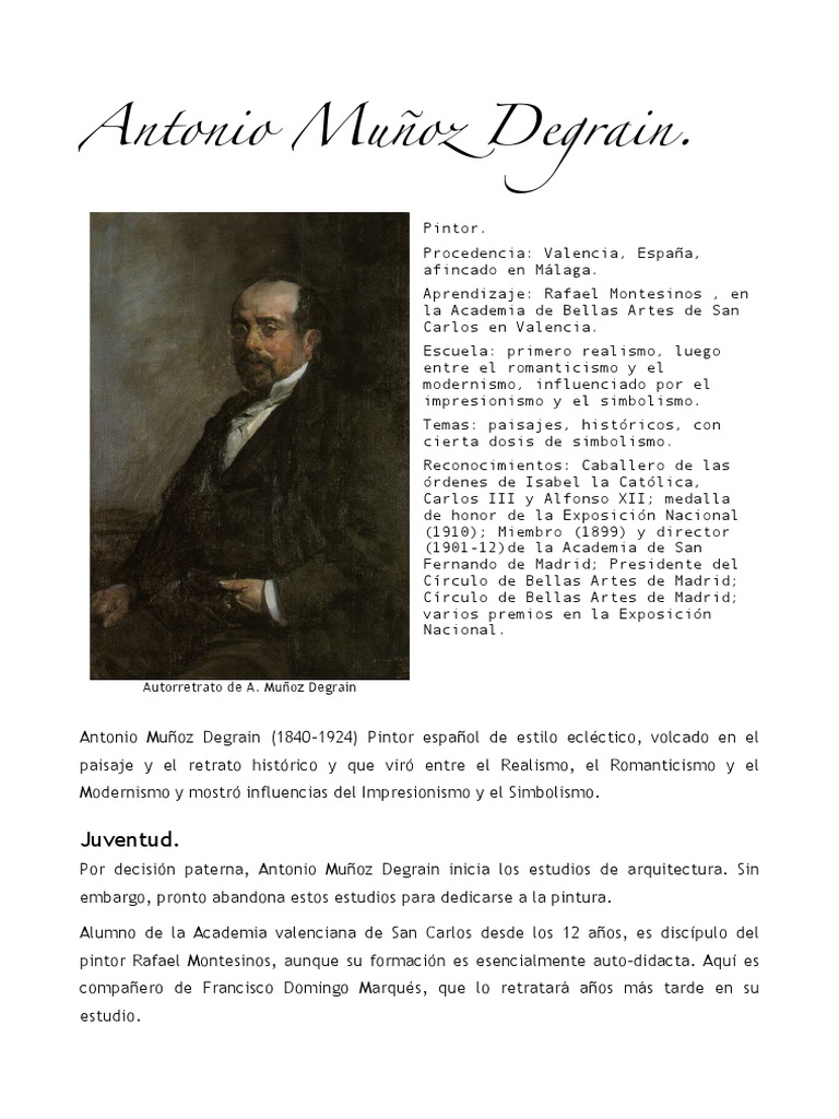 Antonio Muoz Degrain (18401924) Pintor espaol de estilo eclctico, volcado en el