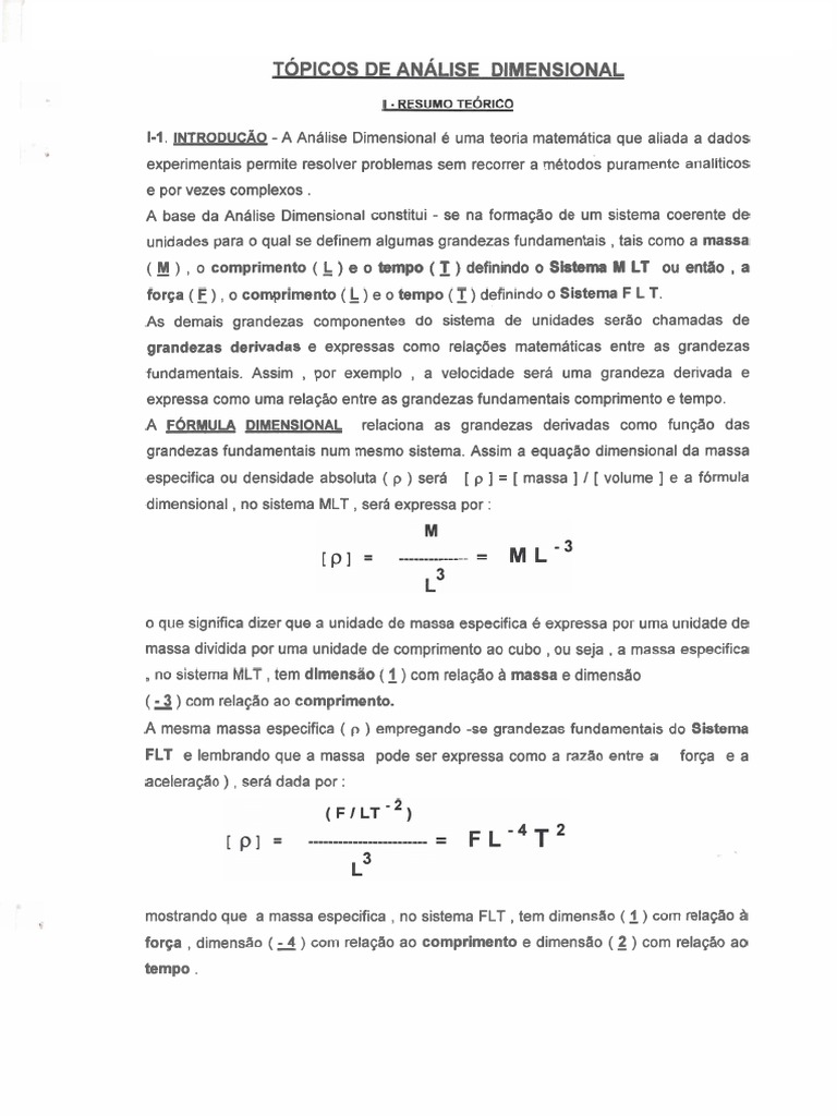 mostrando que a massa especifica , no sistema FLT , tem dimensso ( 1 ) cam relaq%o A