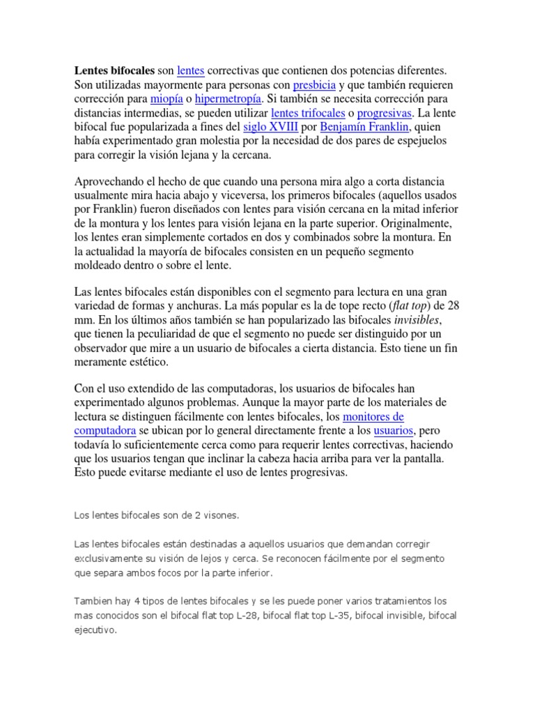 Las lentes bifocales estn destinadas a aquellos usuarios que demandan corregir