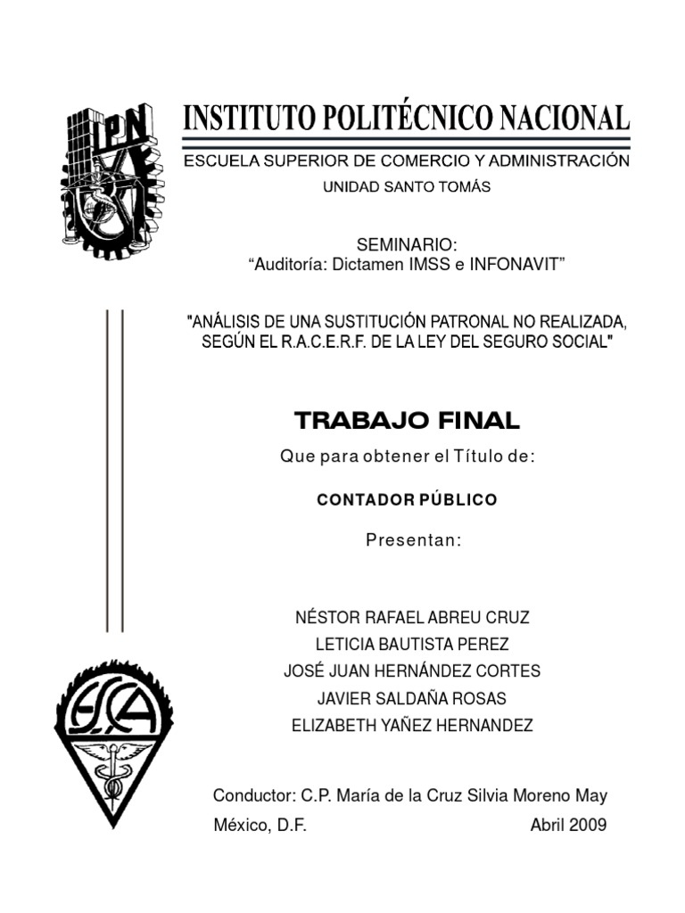 Trabajo Final: Seminario: "Auditoría: Dictamen IMSS e INFONAVIT"