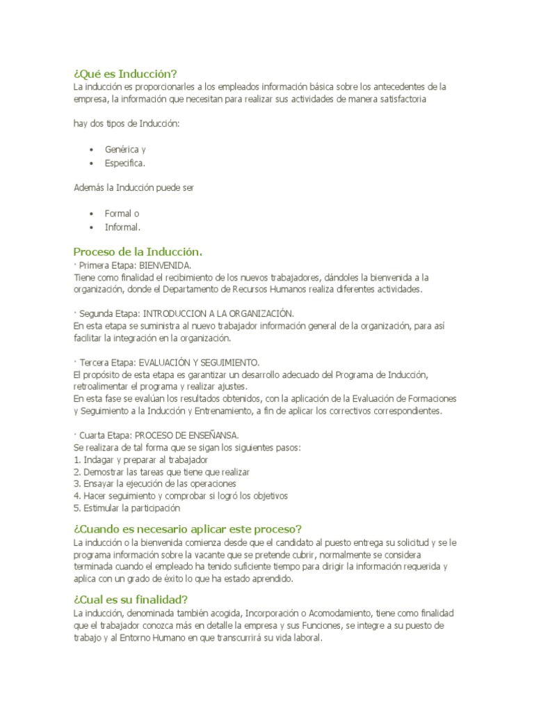 requeridas para la organizacin, lo que permite la ejecucin de un proceso de induccin ms