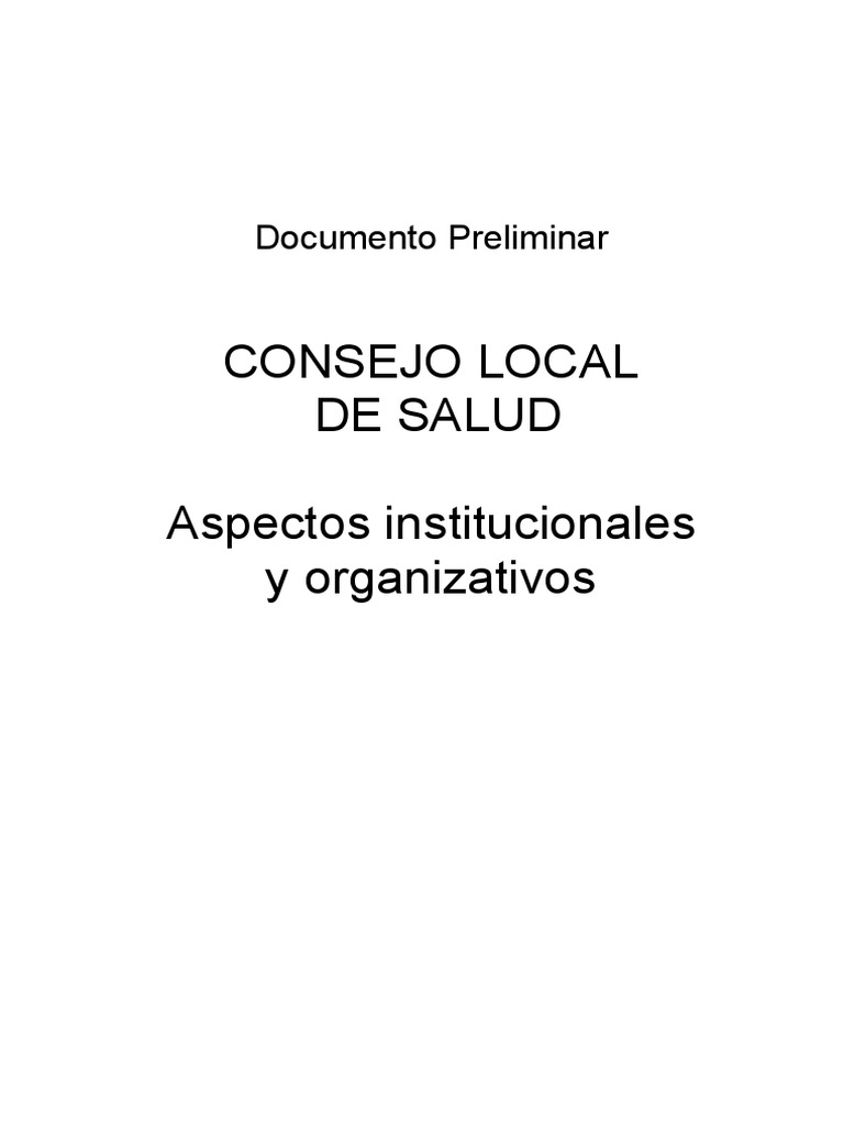 Consejo Local de Salud Aspectos Institucionales y Organizativos