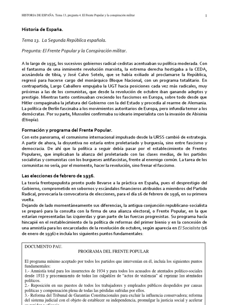 HISTORIA DE ESPAÑA. Tema 13, pregunta 4. El Frente Popular y la conspiración militar 2
