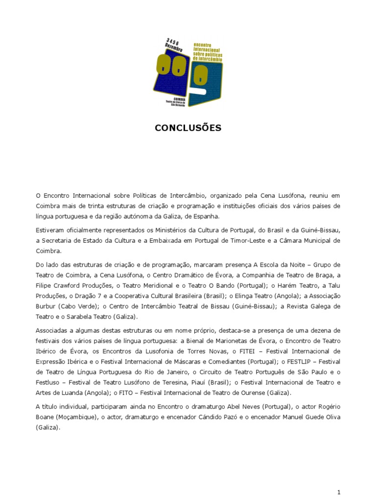 A Cena Lusófona extrai do Encontro Internacional sobre Políticas de Intercâmbio as seguintes conclusões: