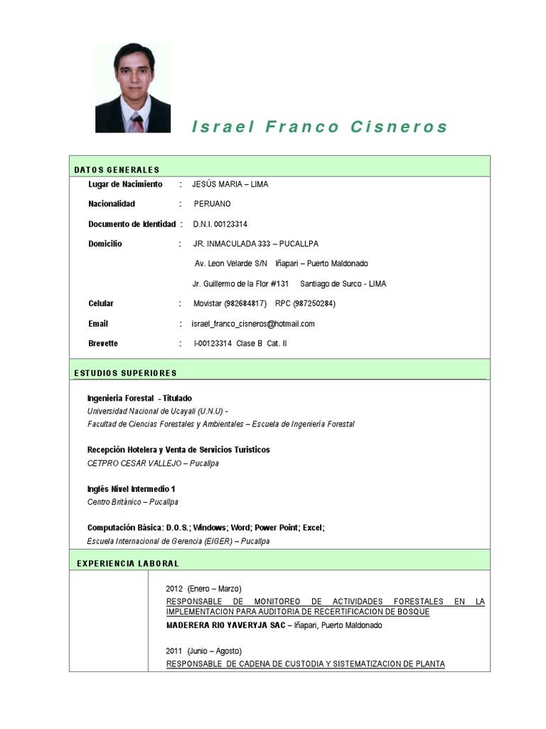 RESPONSABLE DE MONITOREO DE ACTIVIDADES FORESTALES EN LA
