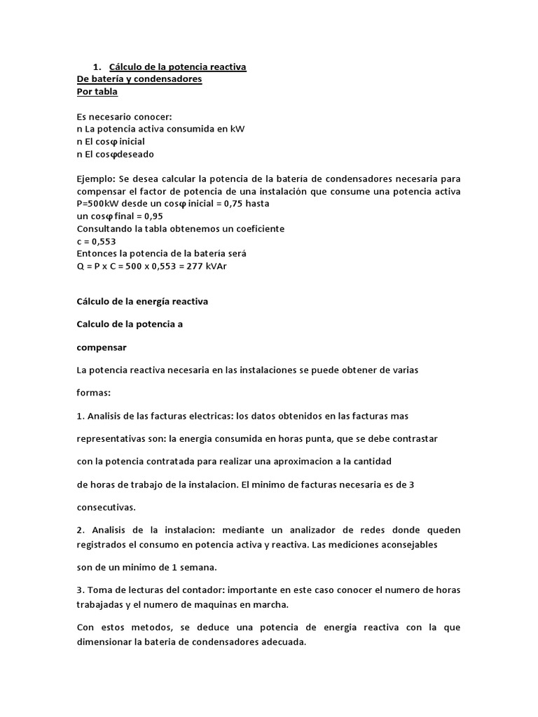 objeto es suministrar una. gua para calcular la potencia reactiva necesaria.
