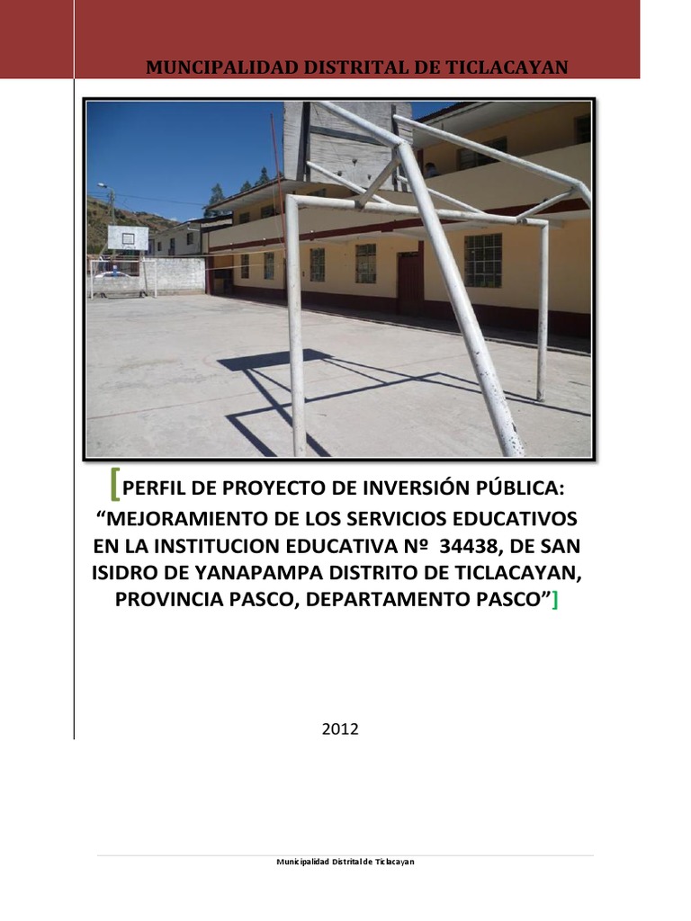 ejecuten por contrata a travs de la Municipalidad de Ticlacayan.
