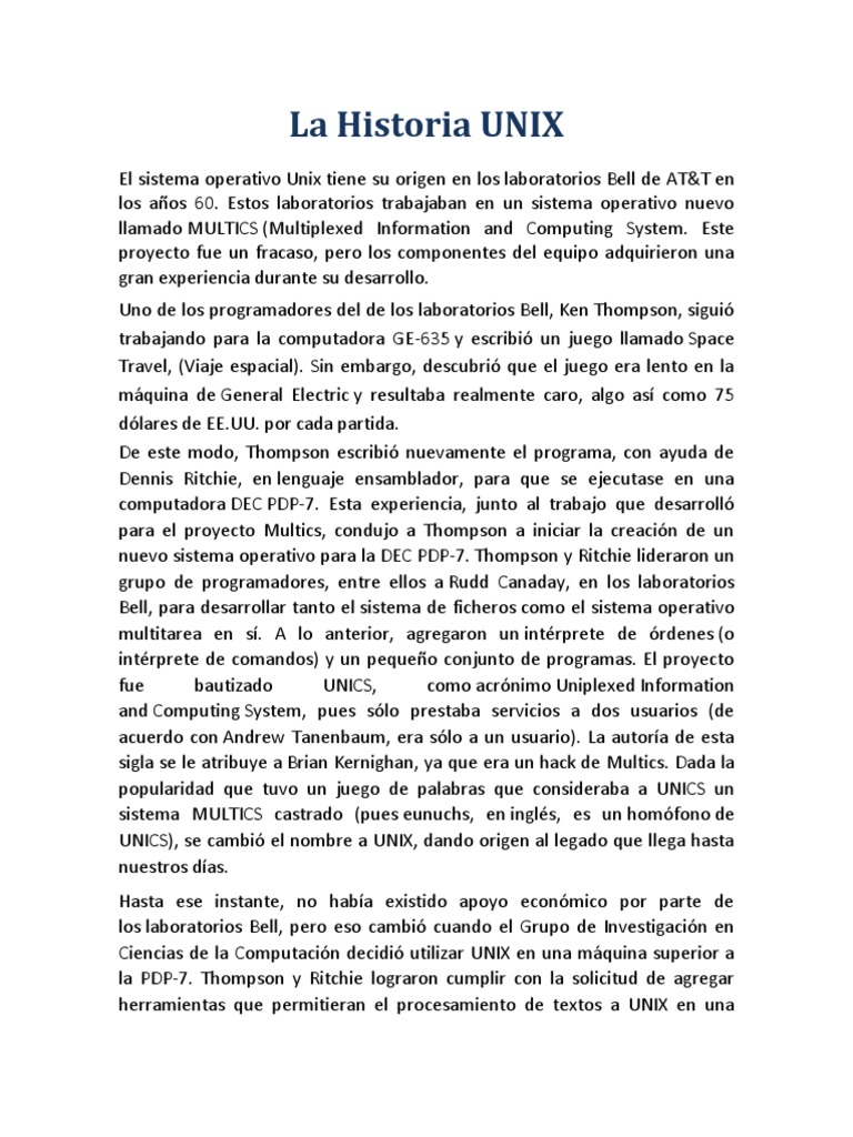 hablaba sobre todo del desarrollo de un pequeo sistema Unix para usuarios