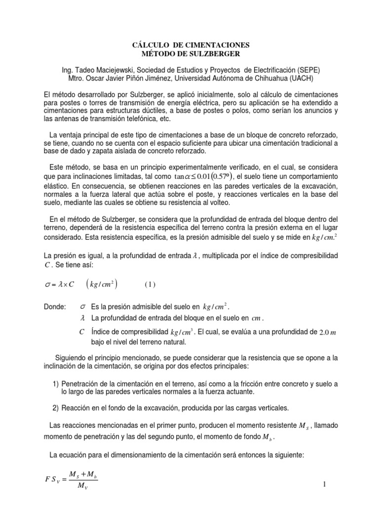 El mtodo desarrollado por Sulzberger, se aplic inicialmente, solo al clculo de cimentaciones