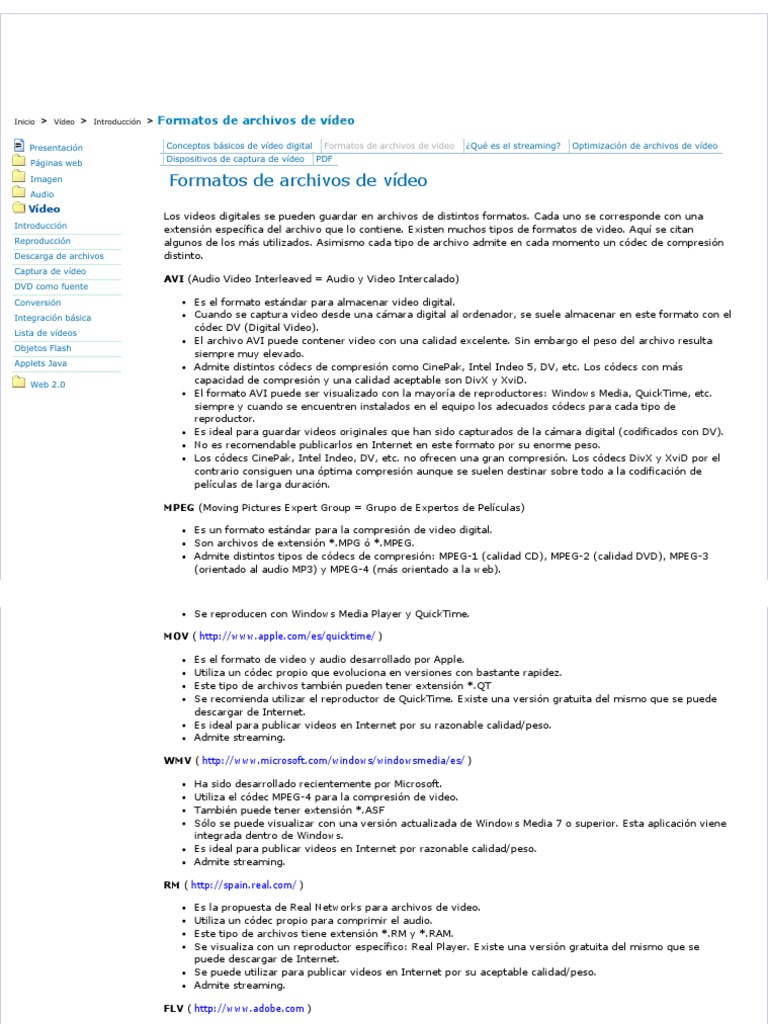Inicio > Vdeo > Introduccin > Formatos de archivos de vdeo