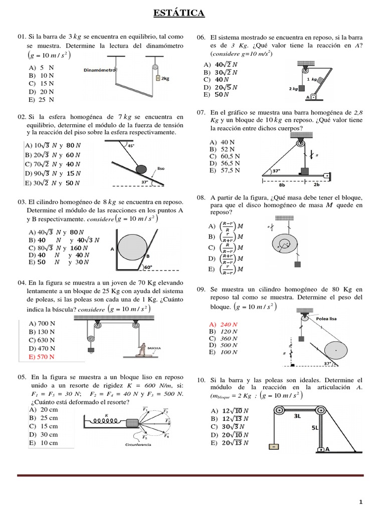 03. El cilindro homogneo de kg 8 se encuentra en reposo.
