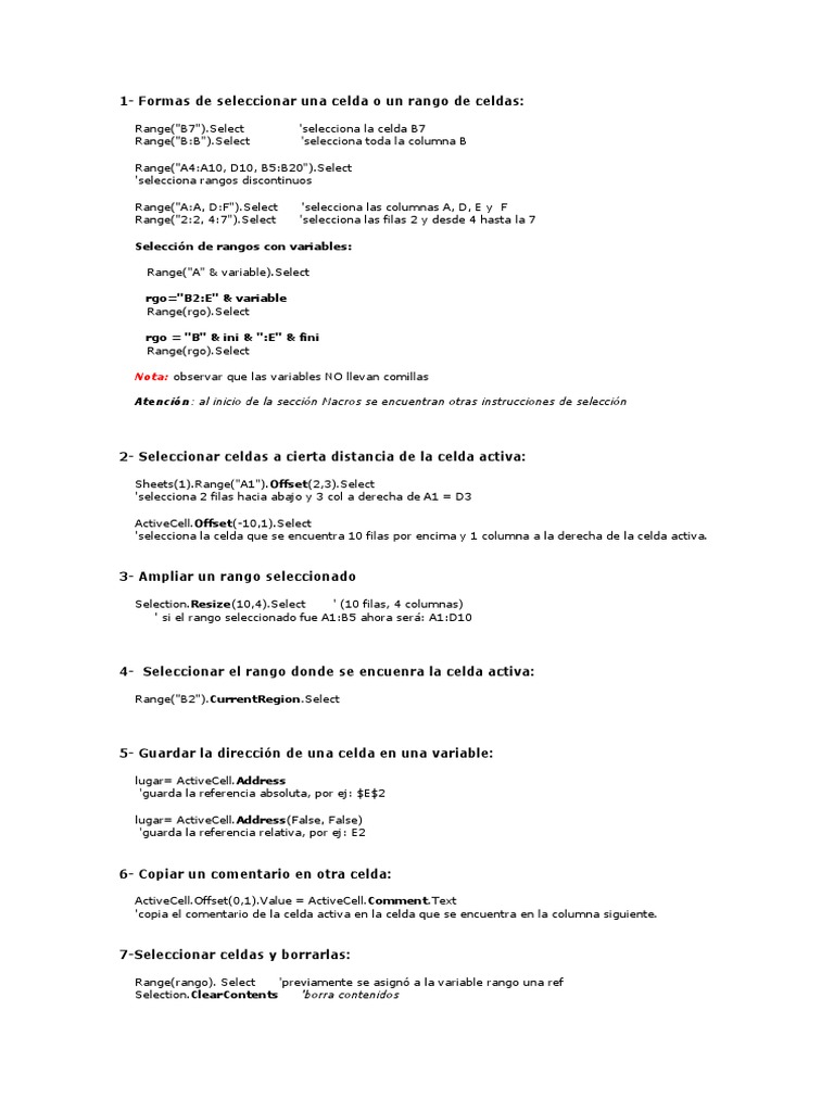 Atencin: al inicio de la seccin Macros se encuentran otras instrucciones de seleccin