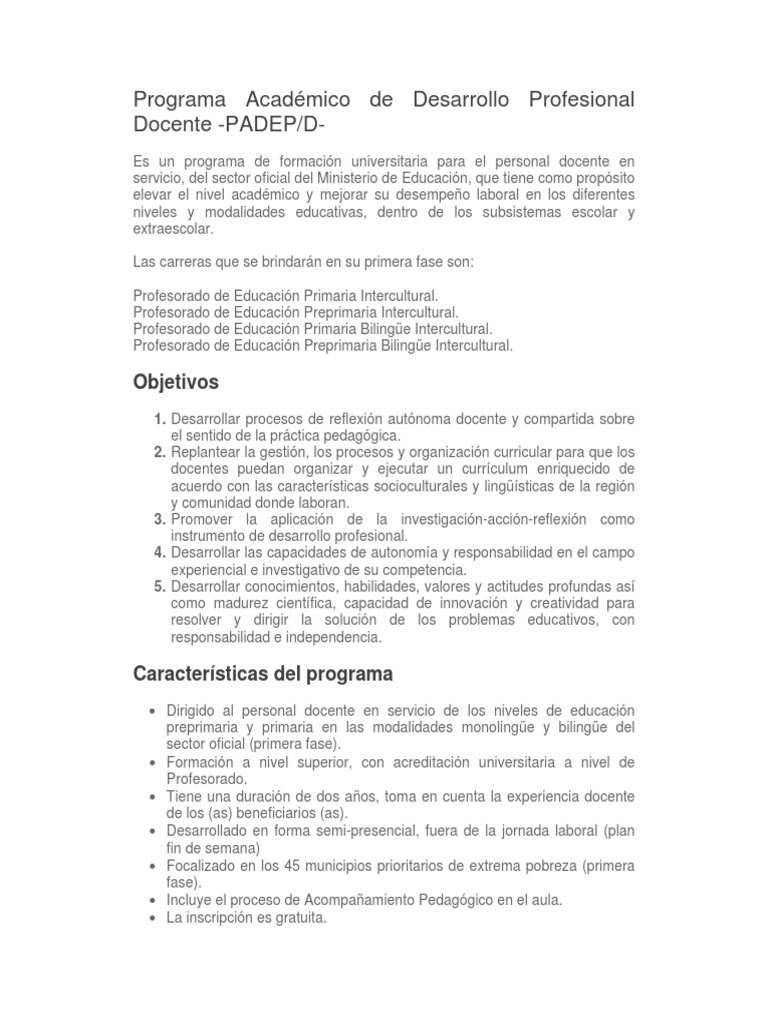 Profesorado de Educacin Preprimaria Bilinge Intercultural.