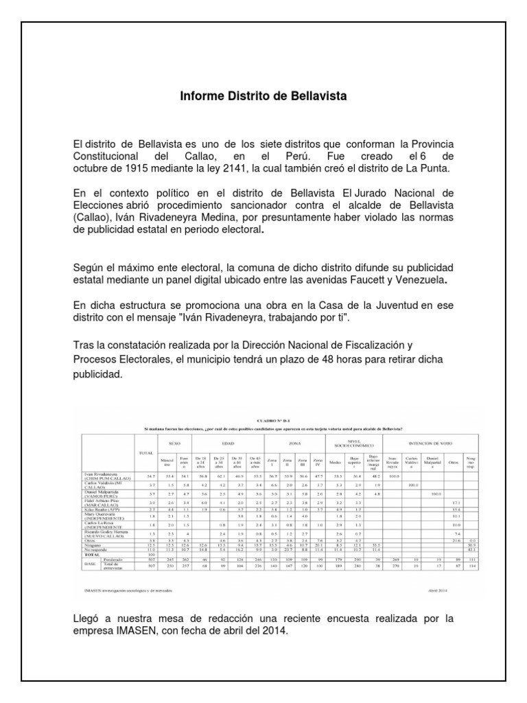 ltima encuesta Municipalidad del Callao elaborada por Imasn entre el 12 y