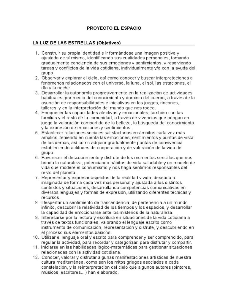 LA LUZ DE LAS ESTRELLAS (Objetivos)