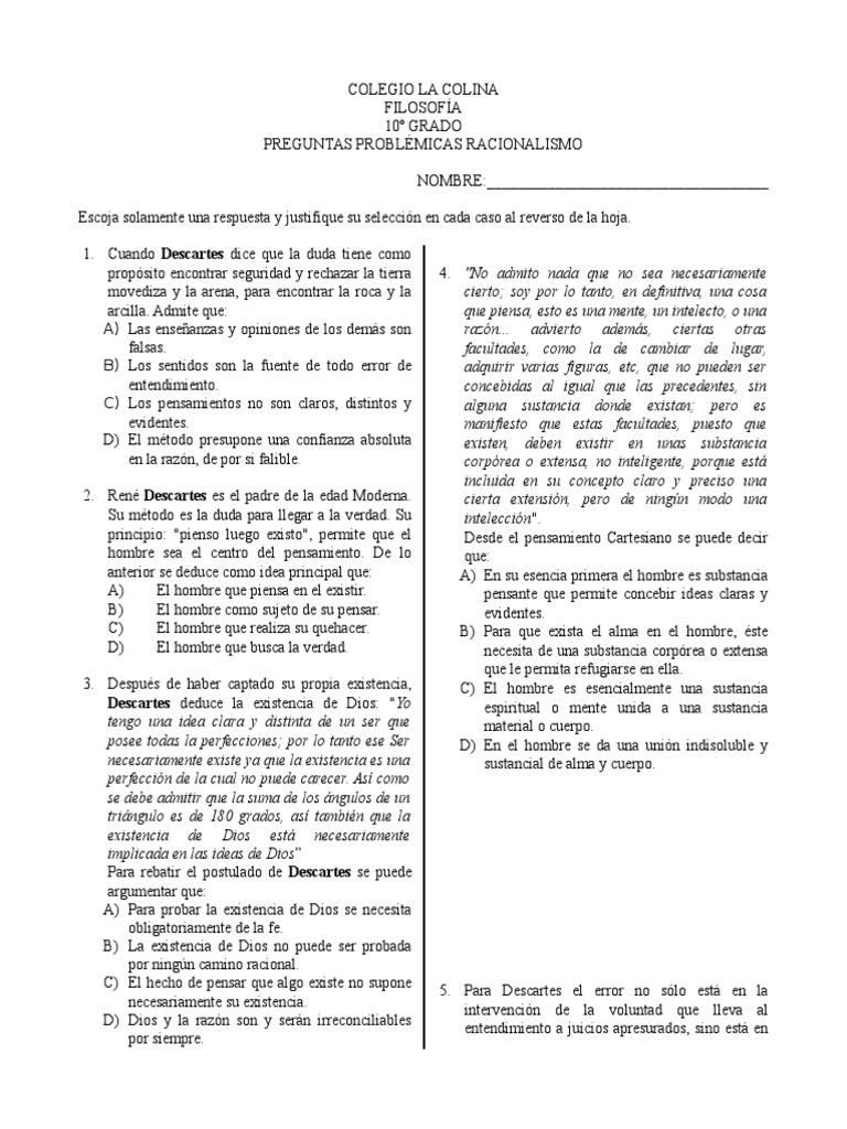 PREGUNTAS PROBLMICAS RACIONALISMO