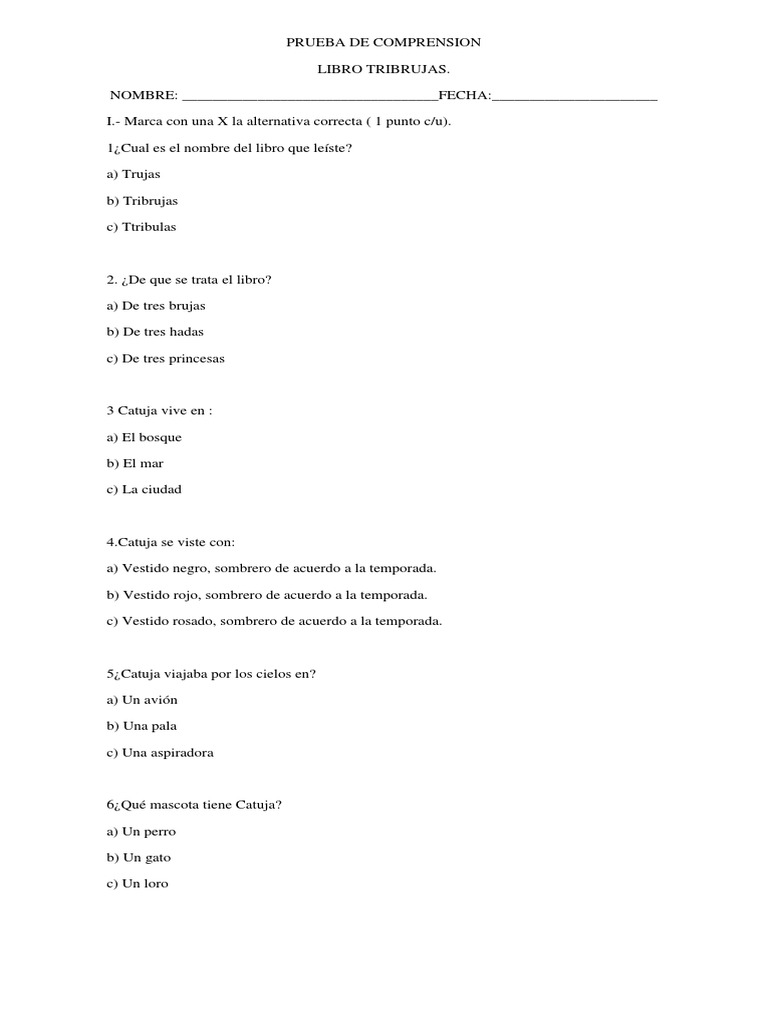 I.- Marca con una X la alternativa correcta ( 1 punto c/u).