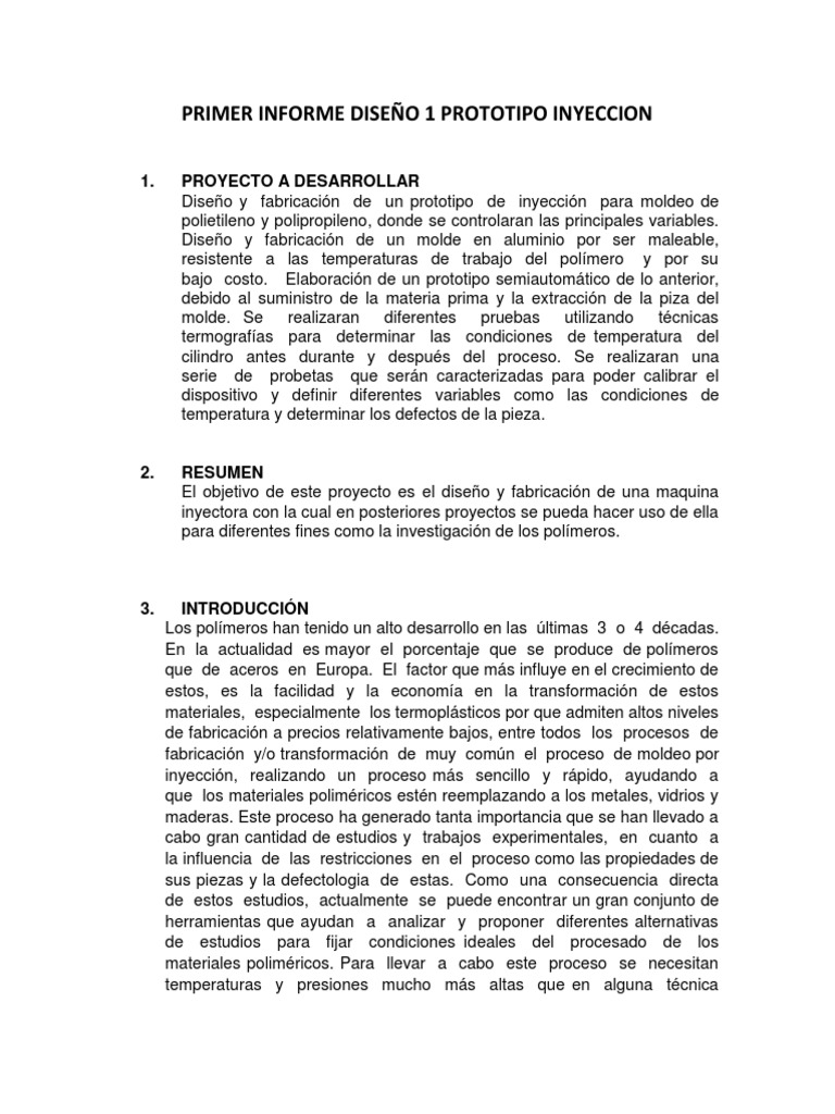 PRIMER INFORME DISEO 1 PROTOTIPO INYECCION