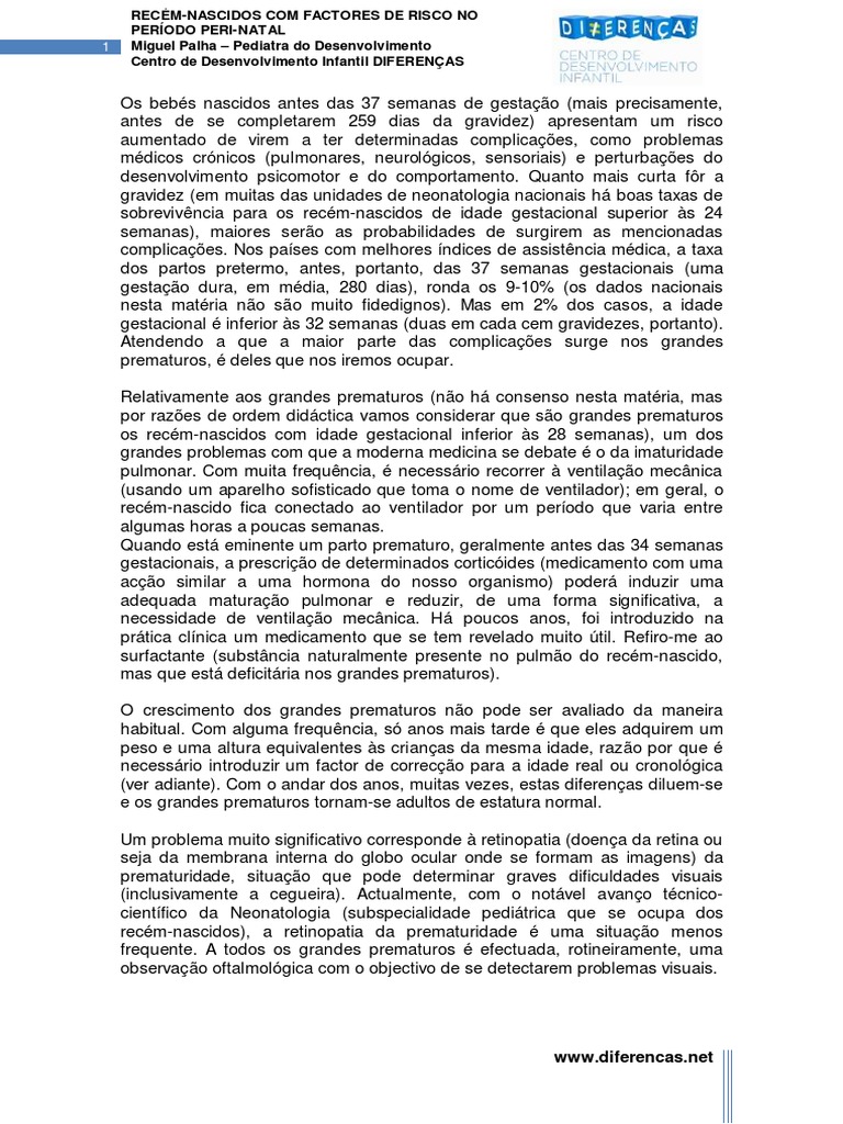 Nos recm-nascidos prematuros, tanto os factores pr-natais como os factores