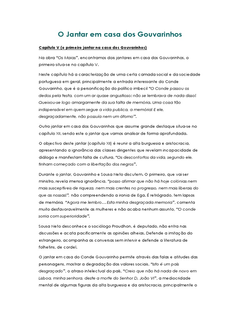 Na obra Os Maias, encontramos dois jantares em casa dos Gouvarinhos, o