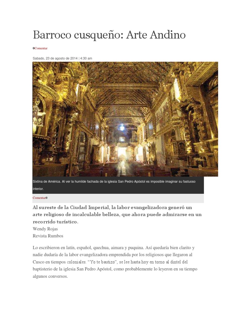 estilo propio de expresin que invita a creer en Dios. En la iglesia de Huaro, Tadeo