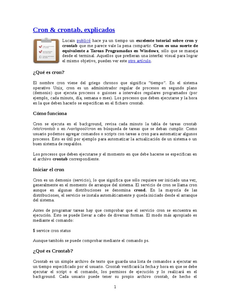 La sinta#is del archivo crontab es muy clara y rgida. 6ay seis campos por cada lnea, y