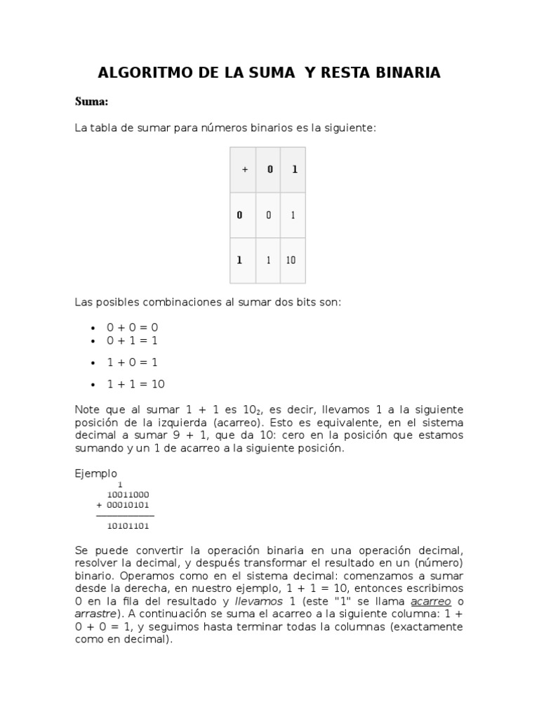ALGORITMO DE LA SUMA Y RESTA BINARIA