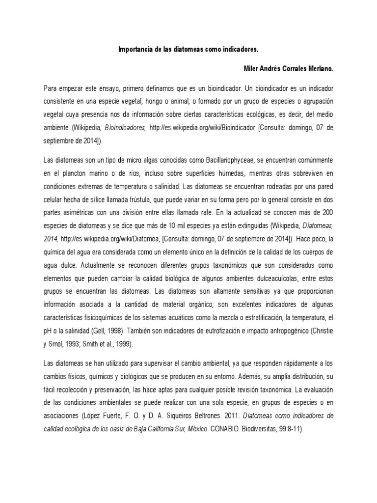 vida, creo que el trabajo de las diatomeas como bioindicadores es un gran avance, y porque no decirlo un