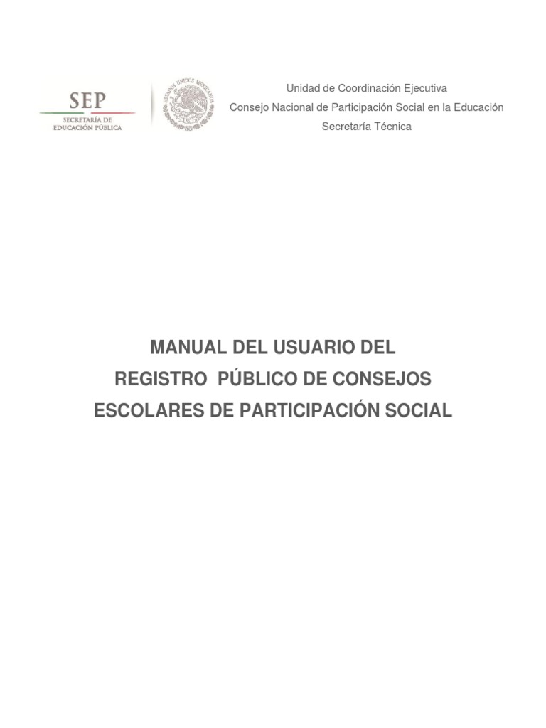 MANUAL DEL USUARIO DEL REGISTRO PBLICO DE CONSEJOS ESCOLARES DE PARTICIPACIN SOCIAL