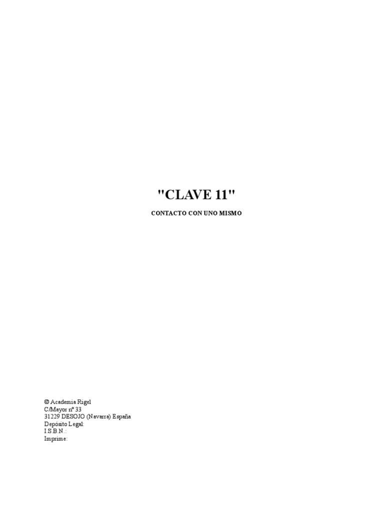 Mundo. Nos quedaba por tanto éste, que quizás sea el más difícil de realizar: "Clave 11" o contacto con uno mismo,