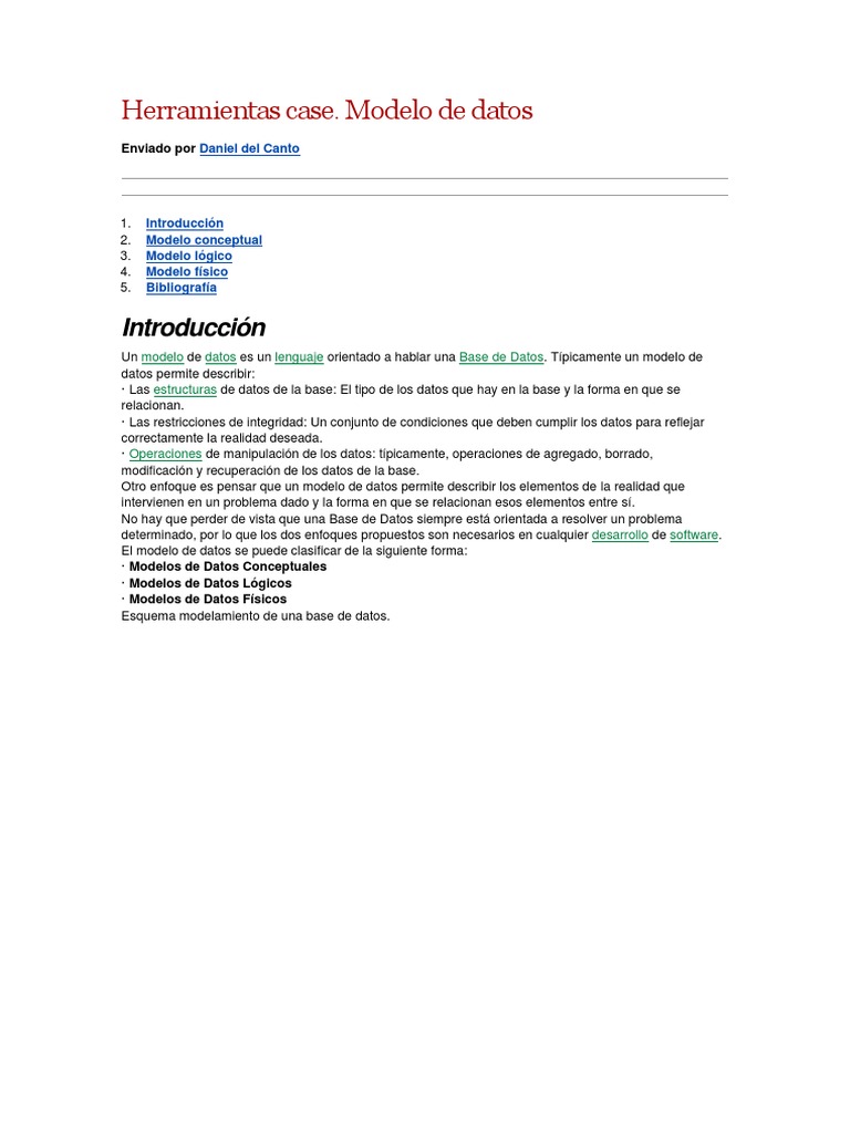 Un modelo de datos es un lenguaje orientado a hablar una Base de Datos. Tpicamente un modelo de