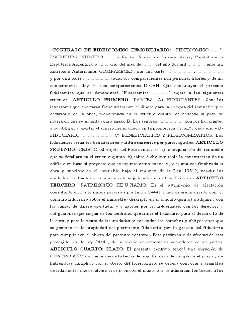 CONTRATO DE FIDEICOMISO INMOBILIARIO: "FIDEICOMISO .......".