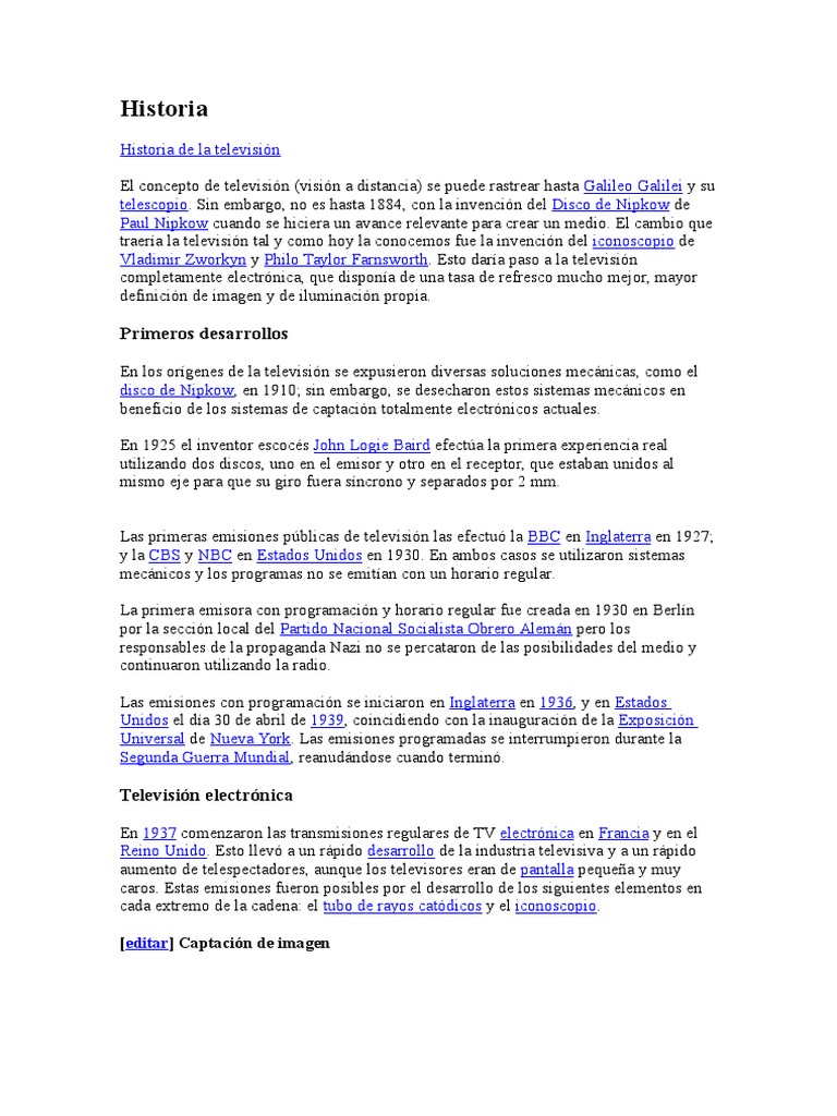 El concepto de televisin (visin a distancia) se puede rastrear hasta Galileo Galilei y su