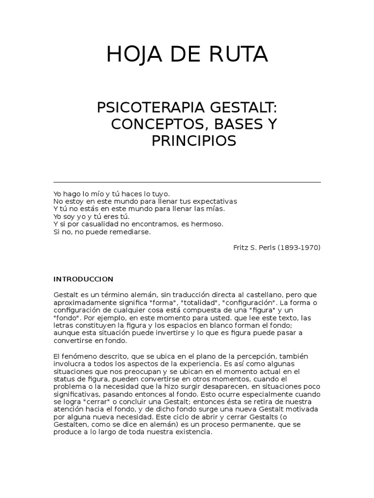 plano, llevada a cabo por FRITZ PERLS, creador del Enfoque Gestltico.