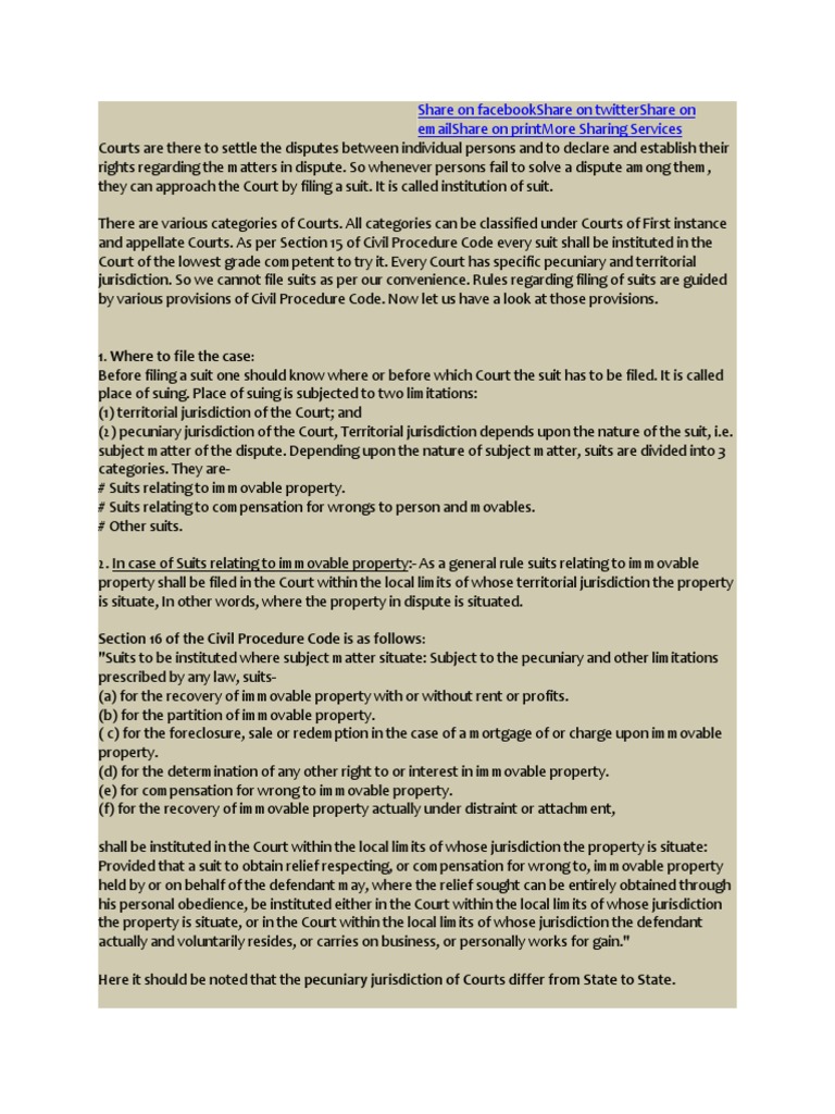 jurisdiction. So we cannot file suits as per our convenience. Rules regarding filing of suits are guided