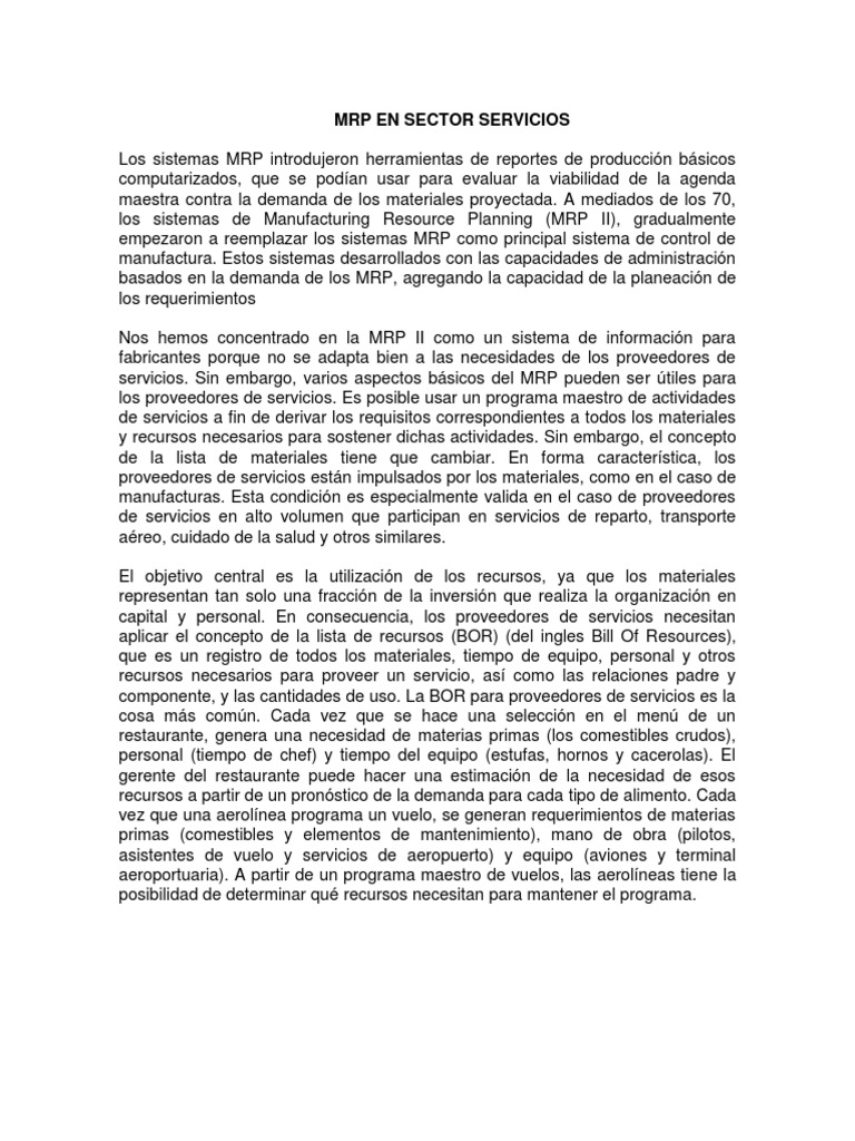servicios. Sin embargo, varios aspectos bsicos del MRP pueden ser tiles para
